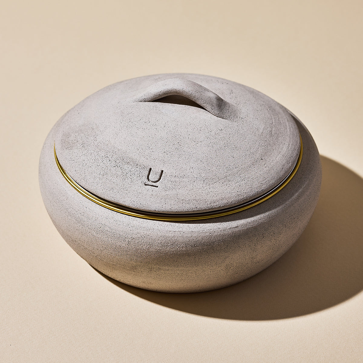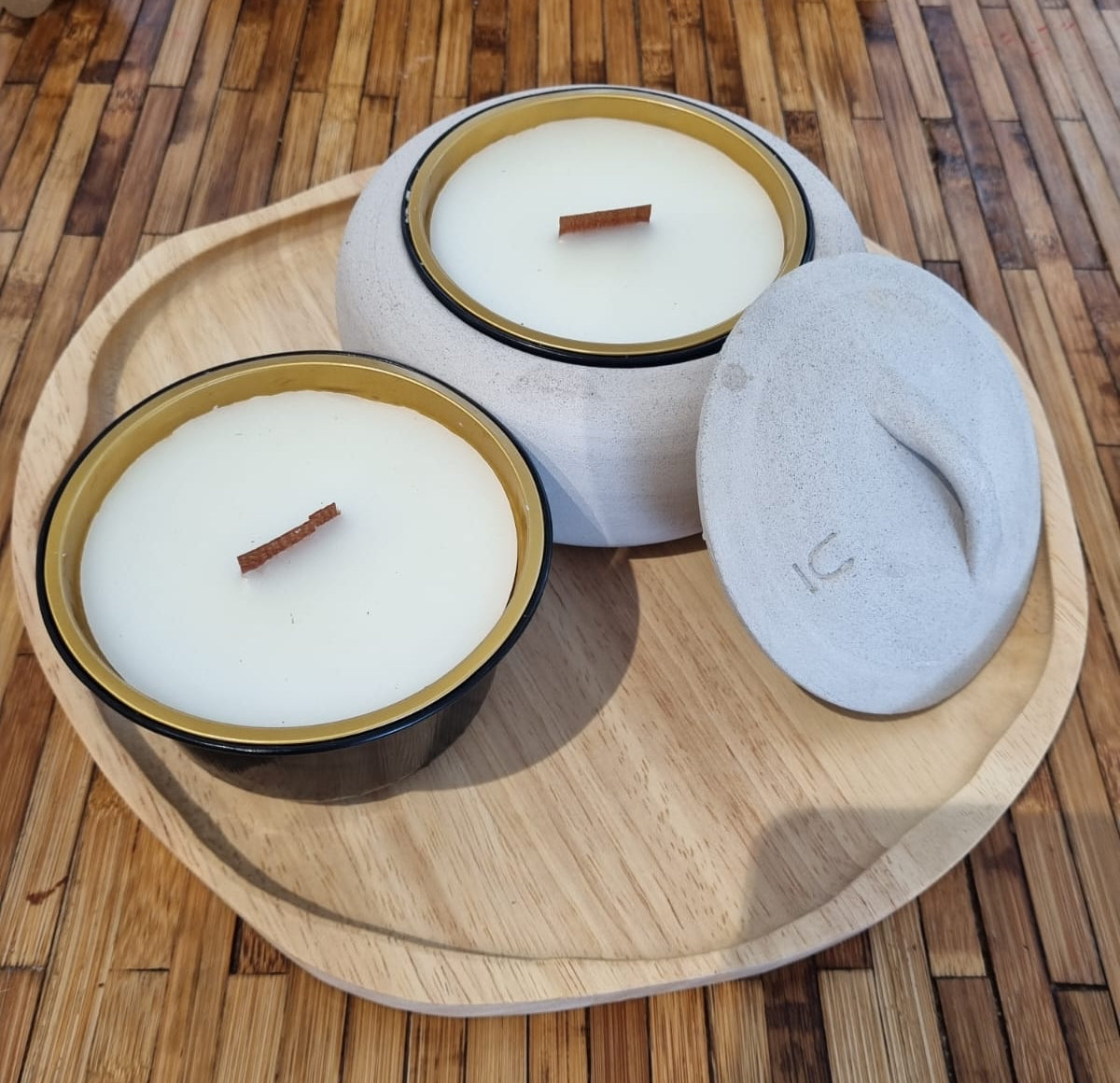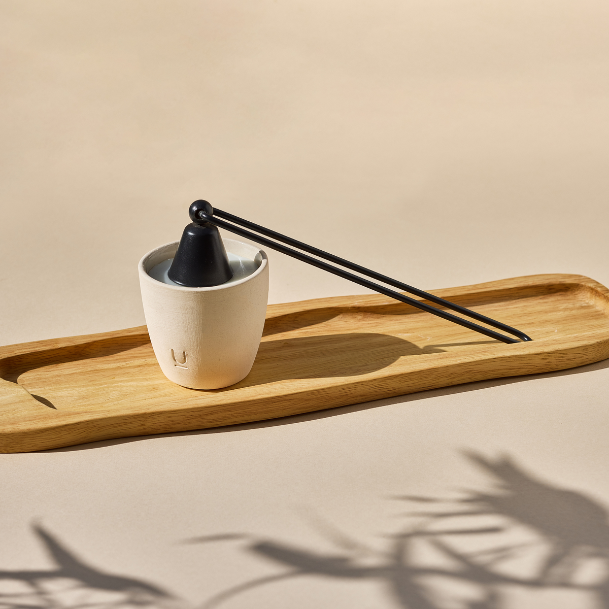 אביב חדש״ - כד חרס ונר - על מגש עגול מרשים״