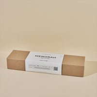 כל חנוכייה מגיעה בקופסת קרטון מהודרת וקשיחה המאפשרת אחסון גם לשנים קדימה.